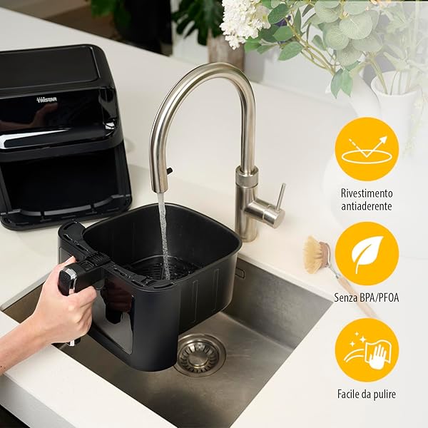 - Grazie alla sua capienza di ben 7,5 litri, puoi usare facilmente la friggitrice ad aria per tutta la famiglia.