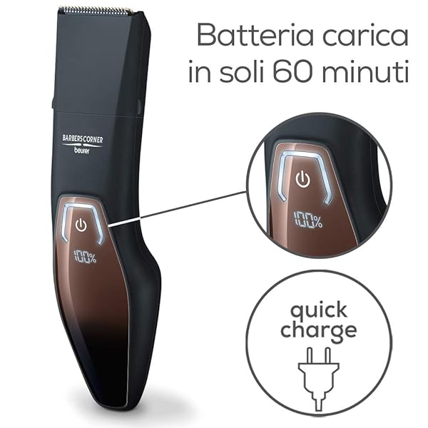- Display LED con indicatore dello stato di carica della batteria ricaricabile e della lubrificazione della lama
